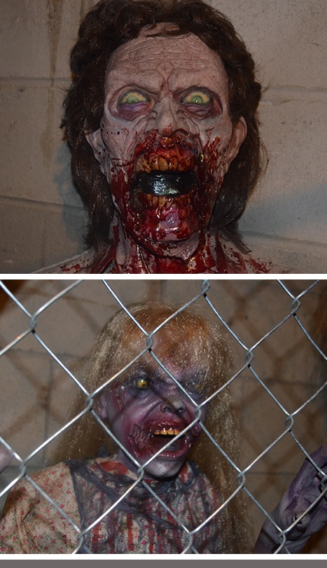 The "Fenced Zombie Scene" was obtained from Unit 70 Studies out of Columbus, OH. Some of the other random zombie figures were obtained from Distortions Unlimited. Collectively, these creatures make for a truly hair-raising experience. With the addition of the new zombies, Gloom House now boasts a family of nearly 75 creatures spanning well over 50 years. |