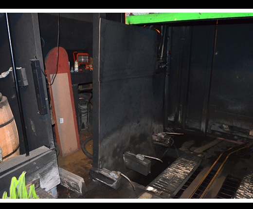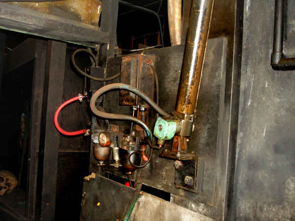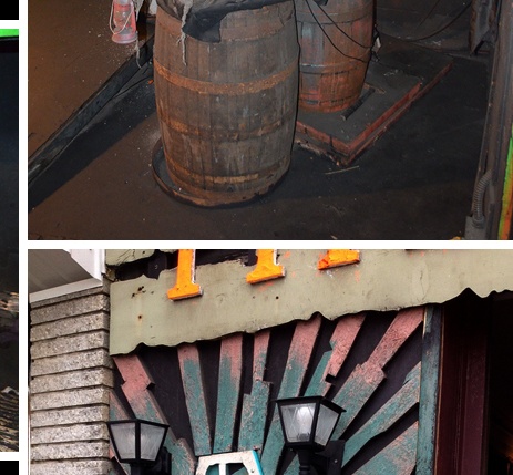 Right: Don't worry; although Zombies have now taken over the Falling Barrels room, the barrels themselves are being stored in the Graveyard until a new location can be chosen for them. The scenery is being stored upstairs behind the Leaper. It's my hope this effect can get relocated and doesn't end up in my collection of retired and endangered stunts. |
