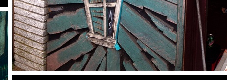 Left: "Breakthru" is a high-impact video effect where zombies appear to flood toward a set of chained doors as air pistons physically move the doors. To make room for the effect, a piece of Tracy's original wall panel was removed and relocated to the second story. The crew did an outstanding job painting the added shingles and scenery around the effect to make it blend in with Tracy's original panels. A timer was installed to allow the effect to trigger every five minutes. Check out a full gallery of this new addition. Check out the full photo gallery. Learn more about the Lobby and Lobby Barkers. |