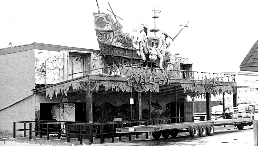 Shown above, the facade of Ghost Ship as it looked in 1981 on the day Granville Trimper dismantled it and took possession of the stunts. The trailer used to transport the stunts can be seen parked in front. Learn more about the Ghost Ship acquisition >