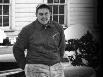 Shown left, Granville Trimper stands outside of his family's Inlet Lodge establishment during a snowy winter day as a young man, only a few years before hiring Bill Tracy to build "The Haunted House".