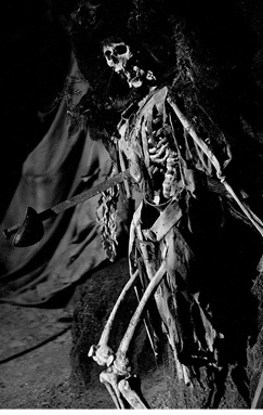 Left: Tracy's Swamp Ghost in the Graveyard of Trimper's Haunted House. A very realistic skull was used in this stunt, but is it real? |