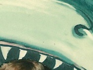 | Below: A member of the Trimper's Haunted House Online Forum was able to relive a childhood memory of Ghost Ship after seeing an image of the shark in the recent Ghost Ship update. He knew it looked familiar, as if he’d seen it in a family photo. Sure enough, his photo from the 1970's was able to solve the mystery of Bill Tracy’s shark mural. A special thanks to Britton M. from Altoona, PA for sharing his childhood photo and for helping us solve this mystery. |