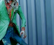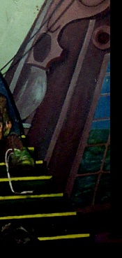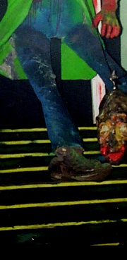 When Trimper’s Haunted House was expanded in 1988 to add a second story, the new space was inhabited with stunts from Ghost Ship, a defunct Bill Tracy dark ride located at Ocean Playland at 65th street in Ocean City, Maryland. The addition of the nautical-themed Tracy stunts made for quite an exciting ride experience and as a result made Trimper’s Haunted House arguably the largest Tracy ride in existence with a five minute ride time and nearly 30 original Tracy effects. Included as one of the new stunts installed from Ocean Playland was “Head Slinger,” or more formally known as “Attic Stairs,” a Tracy classic that consisted of a disoriented man stumbling down some crooked steps while his head flings off and flies through the air on an overhead cable. The stunt had a strong presence in the ride as it sat in a large second-story corner, and was one of the largest effects in the ride standing 12’ high, 6’ wide, and 12’ deep. |
