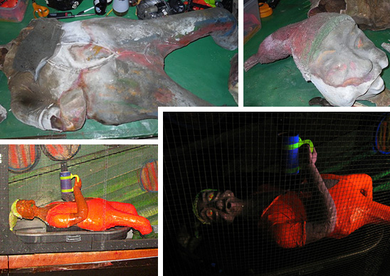 Longtime ride operator and dark ride enthusiast Randy Skalos has been an incredible resource in solving some of the Shack’s biggest puzzles. Skalos is adamant about preserving the ride and maintaining its original Tracy flavor, and that is why he embarked upon a major restoration process of the Wine Cellar stunt during the winter of 2010. Due to vandalism of the stunt in previous seasons, it was no longer recognizable, and Skalos wanted to do something about it. Using his artistic techniques, he reassembled the body and painted it with florescent colors as Tracy originally did 40 years ago. He also installed a new water pump to circulate water on the body to finish the effect. Needless to say, it looks incredible.