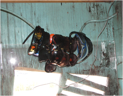 Check out some images I found from an attraction originally called Hour 13 located at Miracle Strip Amusement Park in Panama City, Florida. This attraction had many classic stunts, including a stunt nearly identical to the first room rat (sans ears and arms) and the Scientist/Bartender stunt that came from Ocean Playlands Ghost Ship. The people in these photos were folks exploring the deserted ride before it was demolished. Whoa!