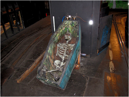 Extra skeletons mean extra drunks! In the spirit of Bill Tracy, and keeping the attraction true to its seaside home, a drunken skeleton is now visible at the end of the ride on the left right before you exit. Poor fella had a bit too much whiskey for his own good! Argh!