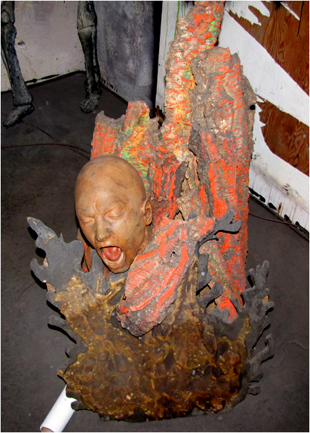 'Memba the latex foam-filled head that was in the old Mad Scientist bar before it was moved? Well, it's still nearby. I stuck it in the fire as part of the Torture Chamber, and I think it looks just fine. Don't worry, the paper towel roll was not incorporated as a new feature in the stunt.
