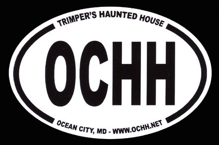 New OCHH stickers are now available to help you get the word out about Trimper's Haunted House! Stick it on your binder, door, car, your girlfriend's forehead.... anywhere! Buy now in the HH Store for only $3.99 with free shipping!