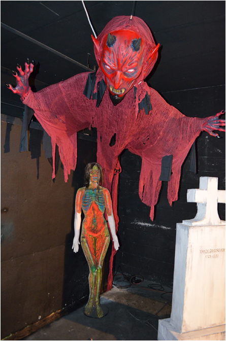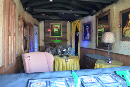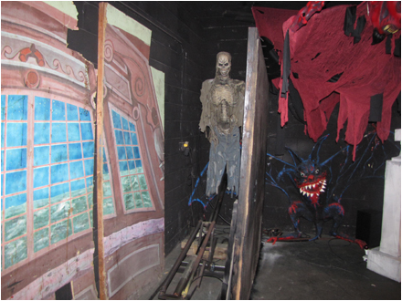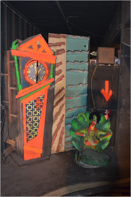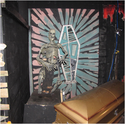 While the wall panel from the lobby was moved upstairs behind the Dancing Coffin, a small wall was built beside the Leaper to hide him from view until he actually leaps. Two additional new effects have also been ordered for installation this year. More to come.