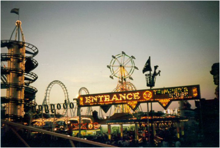 For those that missed this picture on Facebook, it's an awesome image from the mid 90s of two Chance classics that are no longer with us; the Sky Wheel and Toboggan. They are missed by all! I'll be the first to admit that the Sky Wheel was one of the most frightening rides I had ever been on. Also in the picture is the old park entrance sign, which was replaced about a decade ago.