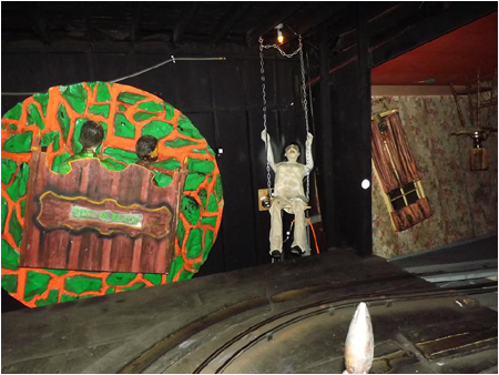 After a brief time out of commission, the Count has finally been fixed and he's back to his chatty ways once again. More importantly, I'm excited to share that a brand new stunt from the Scarefactory was recently installed. "Swing Girl" can now be seen right after the Revolving Barrel, immediately before entering the Upside Down Room. Due to space constraints, this area was one of the few places left for this stunt as it required ample clearance for its movement. Photos to come very shortly.
